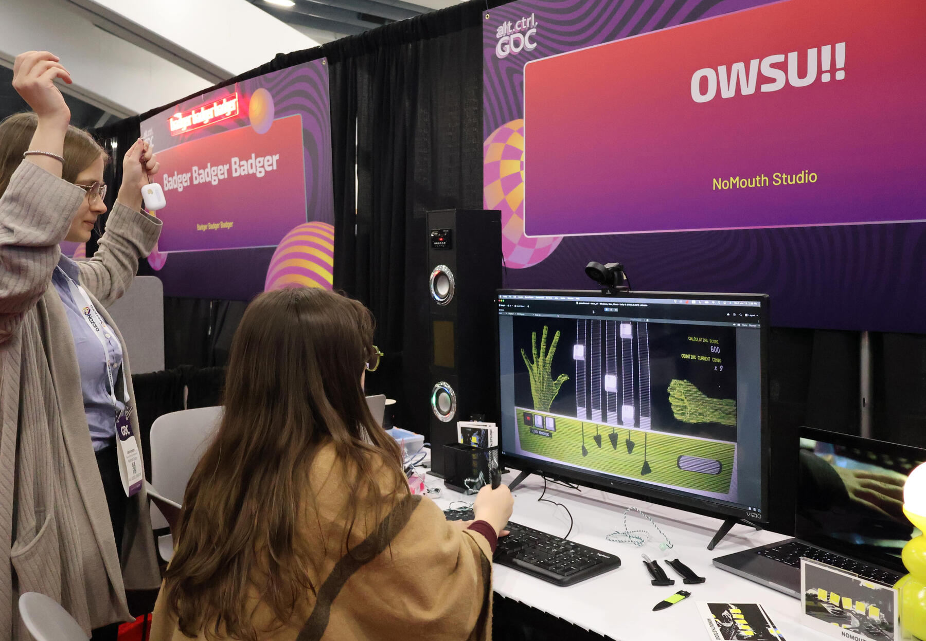 ... is a gesture controlled horror rhythm game played with a retractable knife. It uses computer vision to track a retractable knife as you bounce it between your fingers in a 'Five Finger Fillet' style while generating input zones for notes based on a live model of the player's fingers.Creating feelings of tension, dread, and stress without any overt horror imagery, sounds, or narrative context, OWSU1! serves as a proof of concept for how gesture can be used to alter and amplify the sensations that permeate through a game in any genre.Awards: Alt Ctrl GDC Finalist, 2025